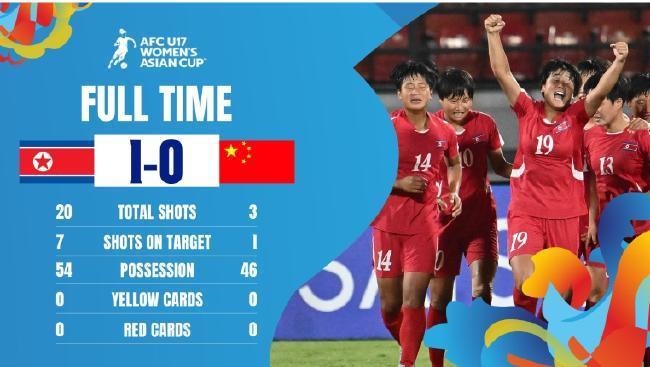 第10分钟,朝鲜队前场贯穿的短传调解回作念,弧顶位置崔一善低平球远射,侯舒楣扑救无理导致失球,中国U17女足0-1过时朝鲜U17女足。